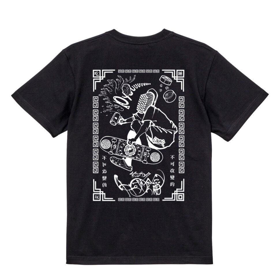 裏なんばの立ち飲み屋チャイニーズロックと、タトゥースタジオ[11号室]で活躍中のタトゥーアー宇賀とのコラボレーションTシャツ。