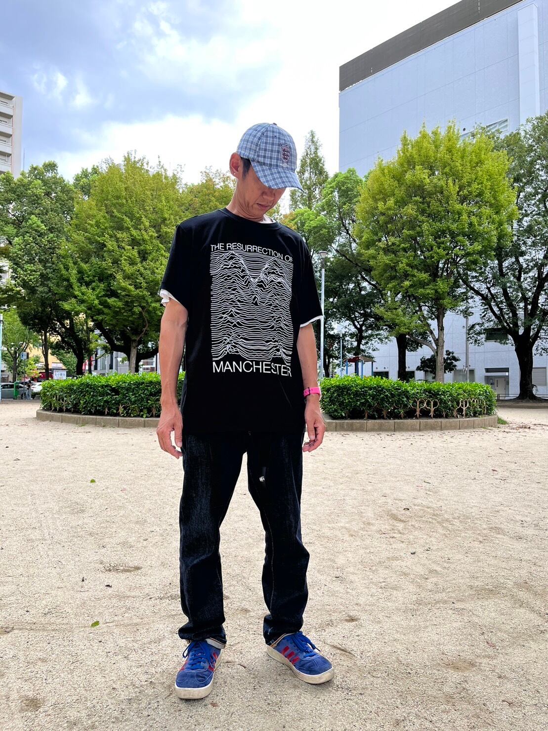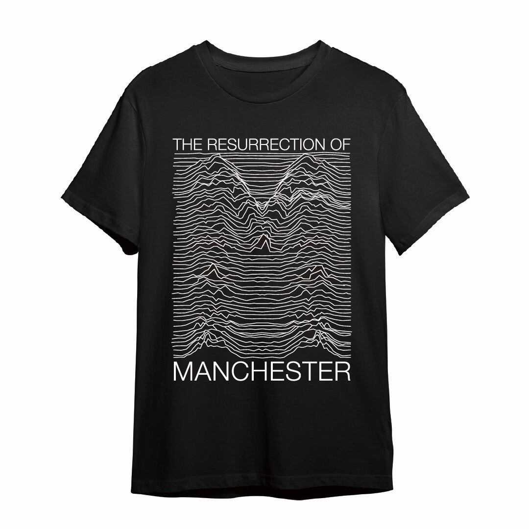 JOY DIVISIONの歴史的名盤「Unknown Pleasres」のジャケットをデザインした「Peter Saville」の波形を、マンチェスターの頭文字「M」が波形になっているフロントのデザインにプリント。